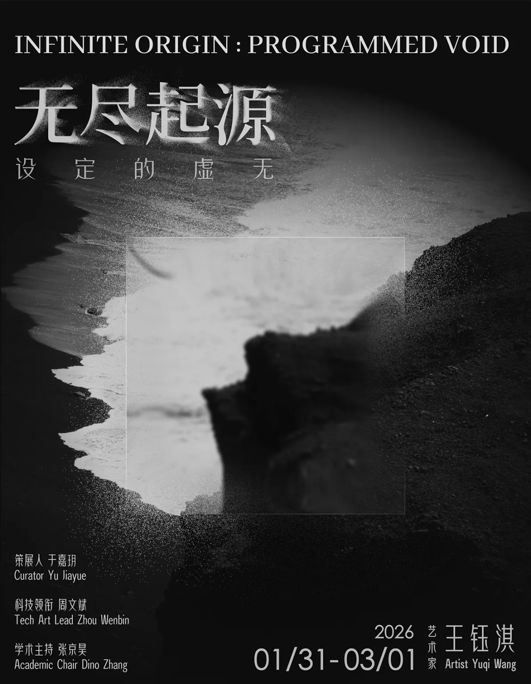 展览以装置与影像构建出一组相互关联的系统模型。艺术家王钰淇通过周易卦象、基因序列、棋局结构、记忆内核与仿生人形机械的并置,探讨主体如何在算法、文化与技术的交织中被塑造。