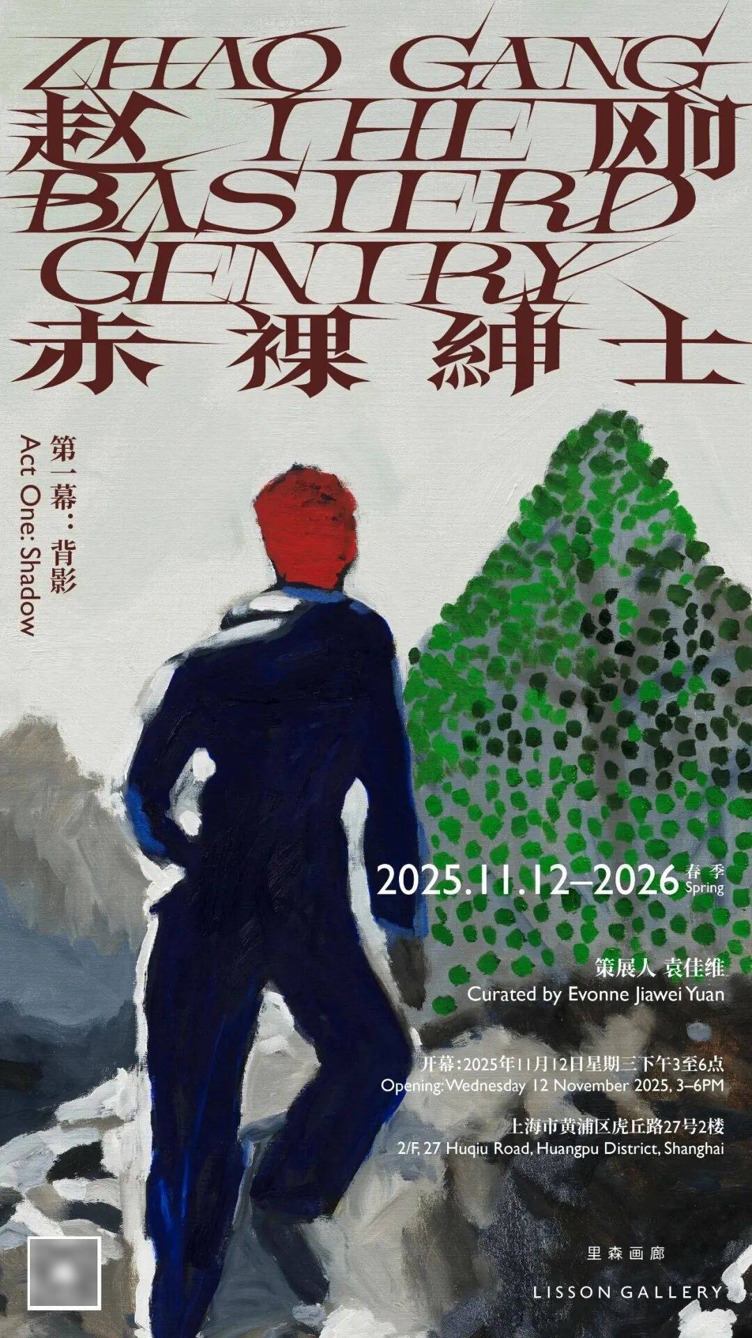 赵刚在里森画廊的第二次个展题为「赤裸绅士」(The Basterd Gentry)。独立策展人袁佳维经过特别构思,将赵刚对风景、肖像与静物题材的执拗探索开拓为一场三部曲式的连续展演,与上海艺术季同步呈现。