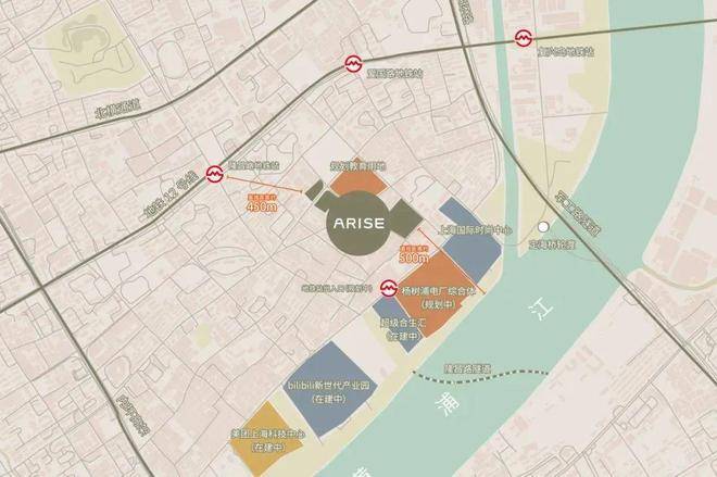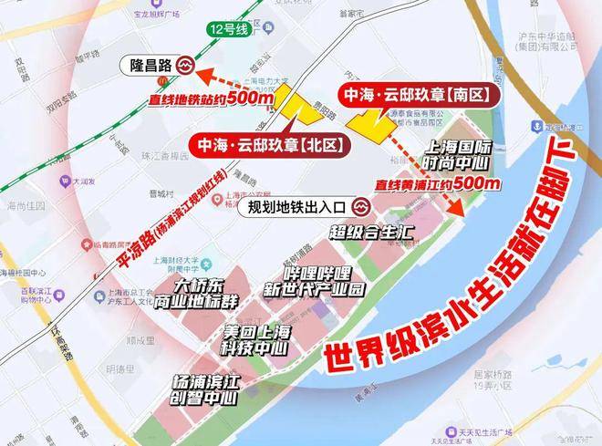 轨道交通方面:距离地铁12号线米,步行可达,这在杨浦滨江一众不靠轨交的项目中是非常难得的。进站后4站可达北外滩,7站陆家嘴,8站通达人广。